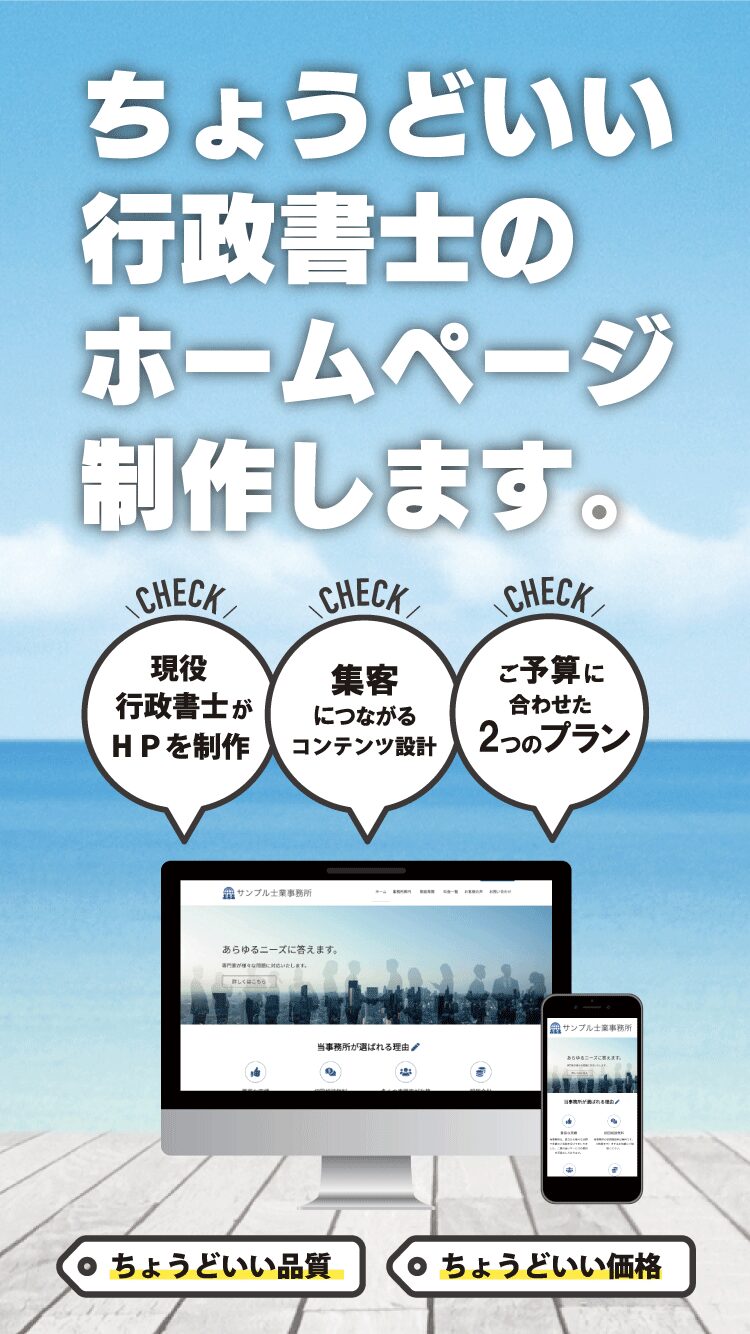 「ちょうどいい行政書士HP」では、現役の行政書士が行政書士向けに特化したホームページを作成いたします。